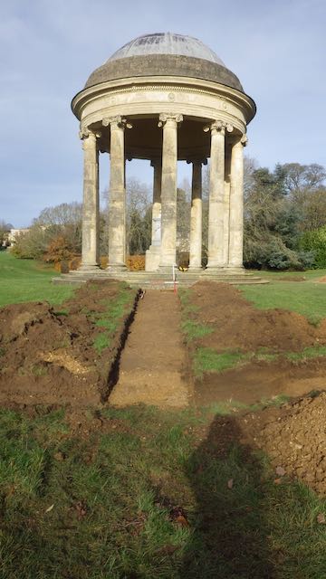 Stephen has been undertaking a series of archaeological investigations in the Stowe Landscape, including the Cascade, The Doric Arch and the approaches to the Rotunda (see images). He will be updating us on these, revealing how the layout of various parts of the landscape have been adapted and changed over time. It is hoped that we can combine the talk with a guided visit later in the year.